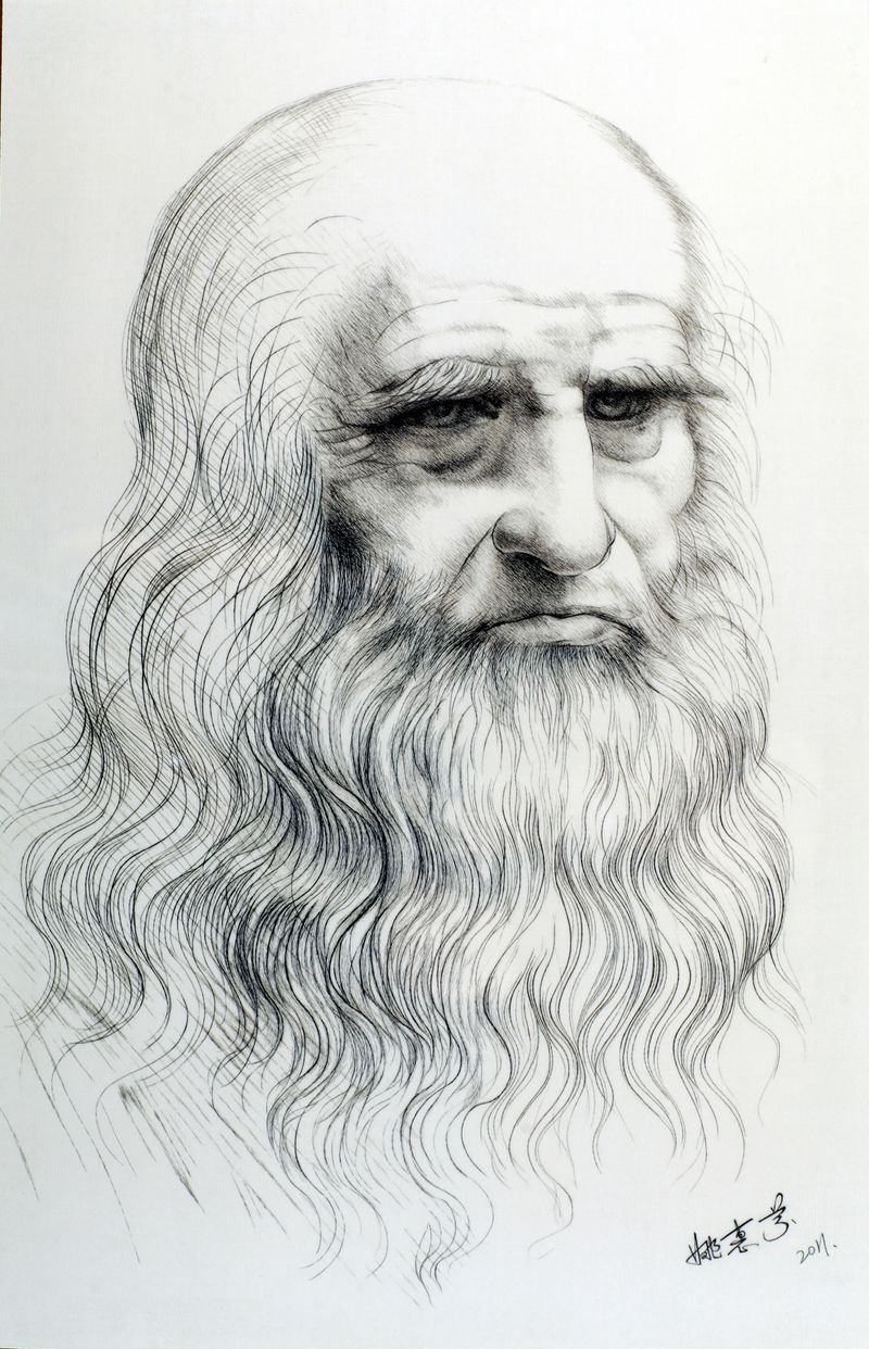 File photo taken in 2016 shows the Suzhou Embroidery work "self portrait of Leonardo da Vinci" by Yao Huifen. (Xinhua)