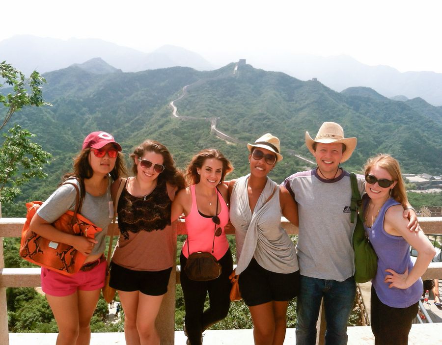Young musicians attending "I Sing Beijing" project pose for a group photo on the Great Wall in Beijing, capital of China, Aug. 6, 2012. (Xinhua/Luo Xiaoguang)