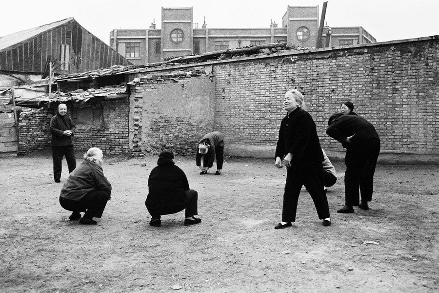 A group of ladies up early are exercising at an open ground opposite the famous Beijing Friendship Hotel, 1980. (Photo provided to Xinhua by Mike Emery)