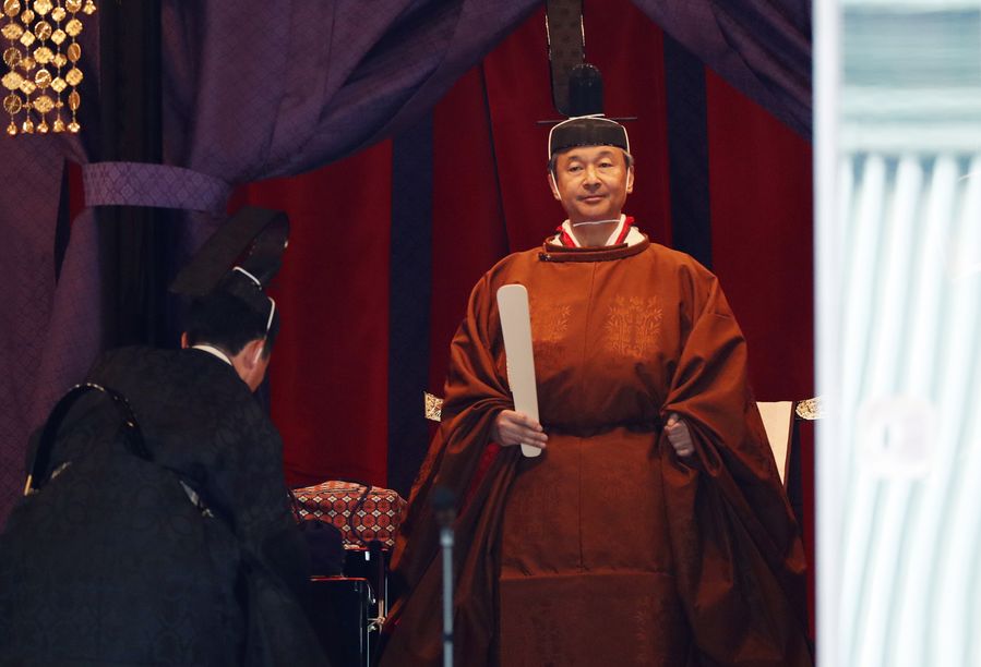"In accordance with the Constitution of Japan and the Special Measures Law on the Imperial House Law, I now perform the Ceremony of Enthronement at the Seiden State Hall and proclaim my enthronement to those at home and abroad," he said.