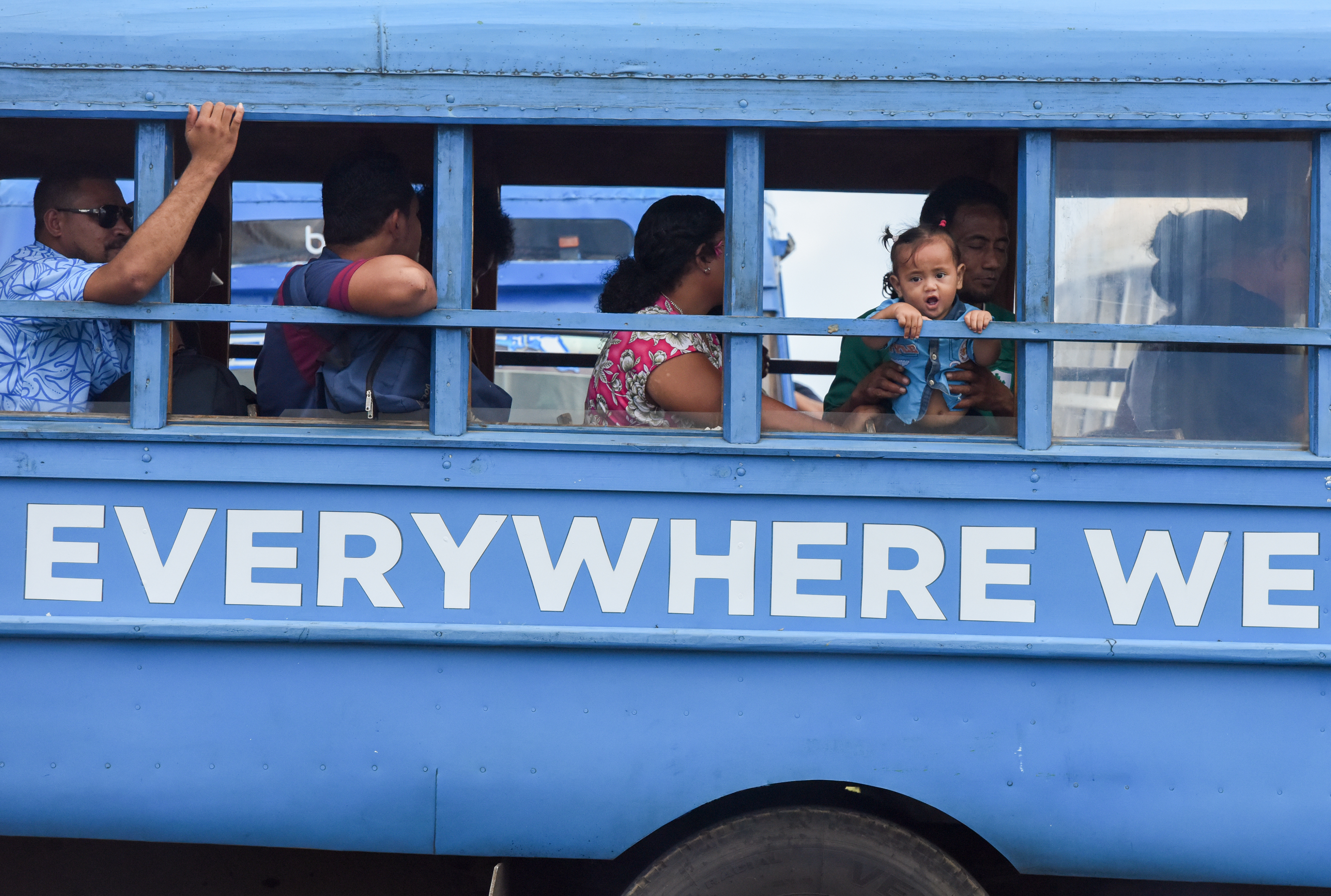 Passengers take a public bus in Apia, capital of Samoa, Oct. 21, 2019. (Xinhua/Guo Lei)