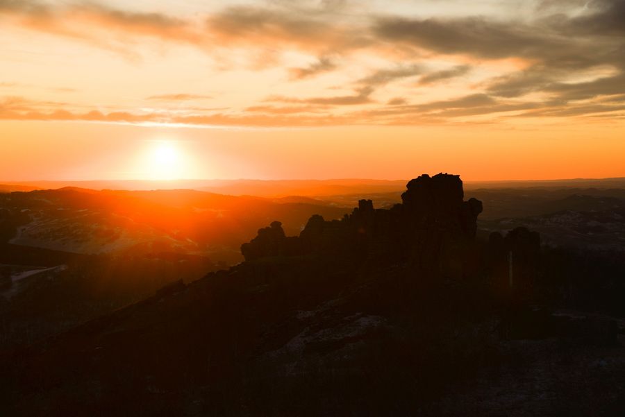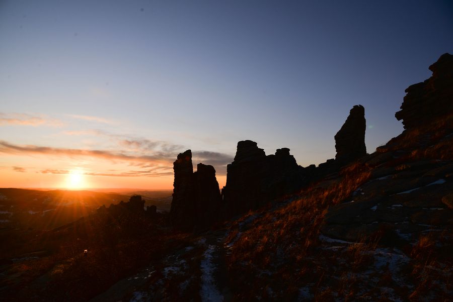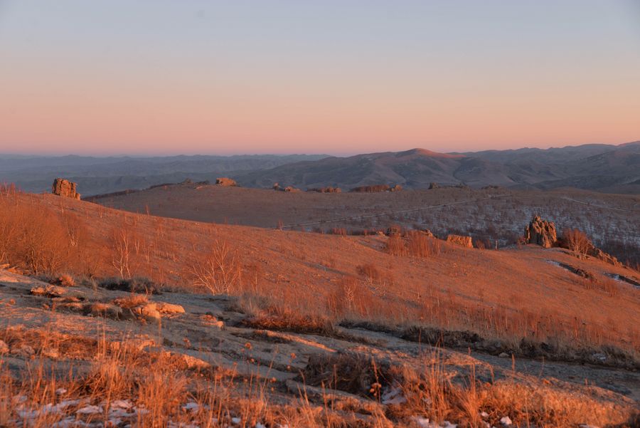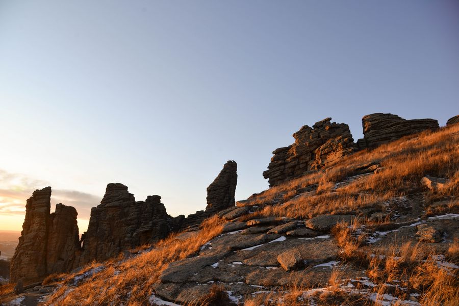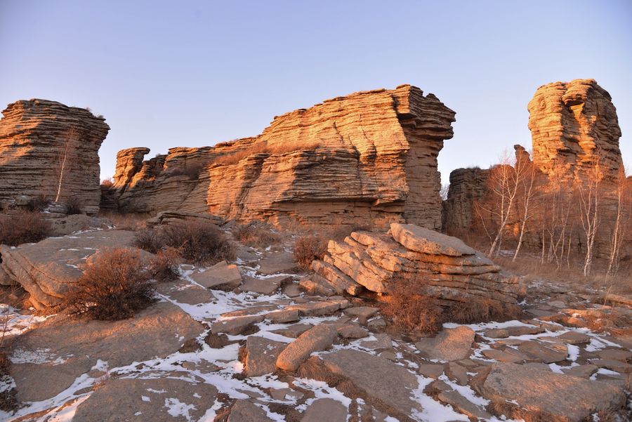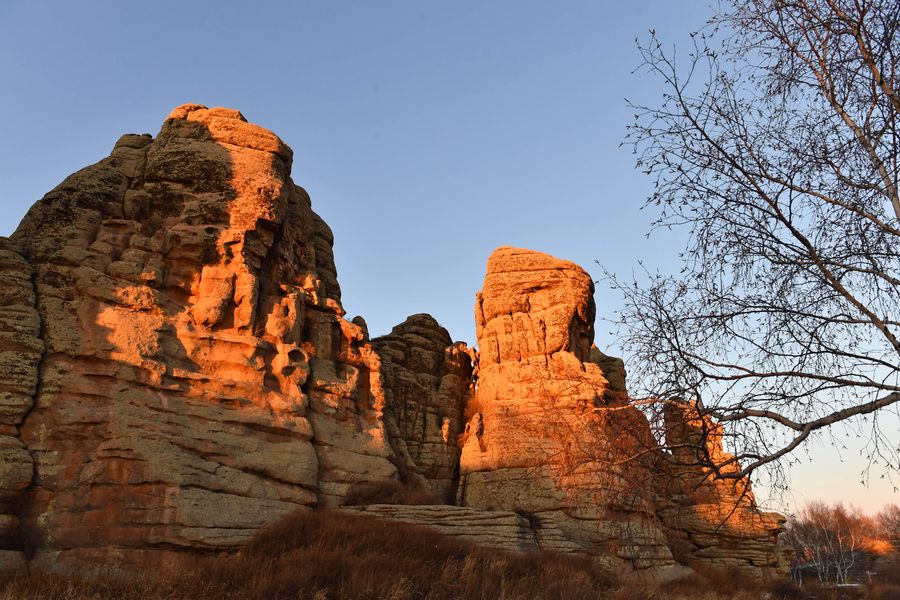 Photo taken on Nov. 25, 2019 shows the dusk view of Hexigten stone forest scenic spot in Hexigten Banner of Chifeng City, north China's Inner Mongolia Autonomous Region. (Xinhua/Wang Xuebing)