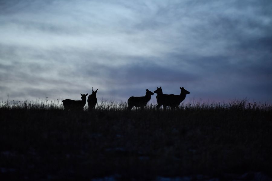 Photo taken on Nov. 25, 2019 shows the dusk view of Hexigten stone forest scenic spot in Hexigten Banner of Chifeng City, north China's Inner Mongolia Autonomous Region. (Xinhua/Xu Qin)