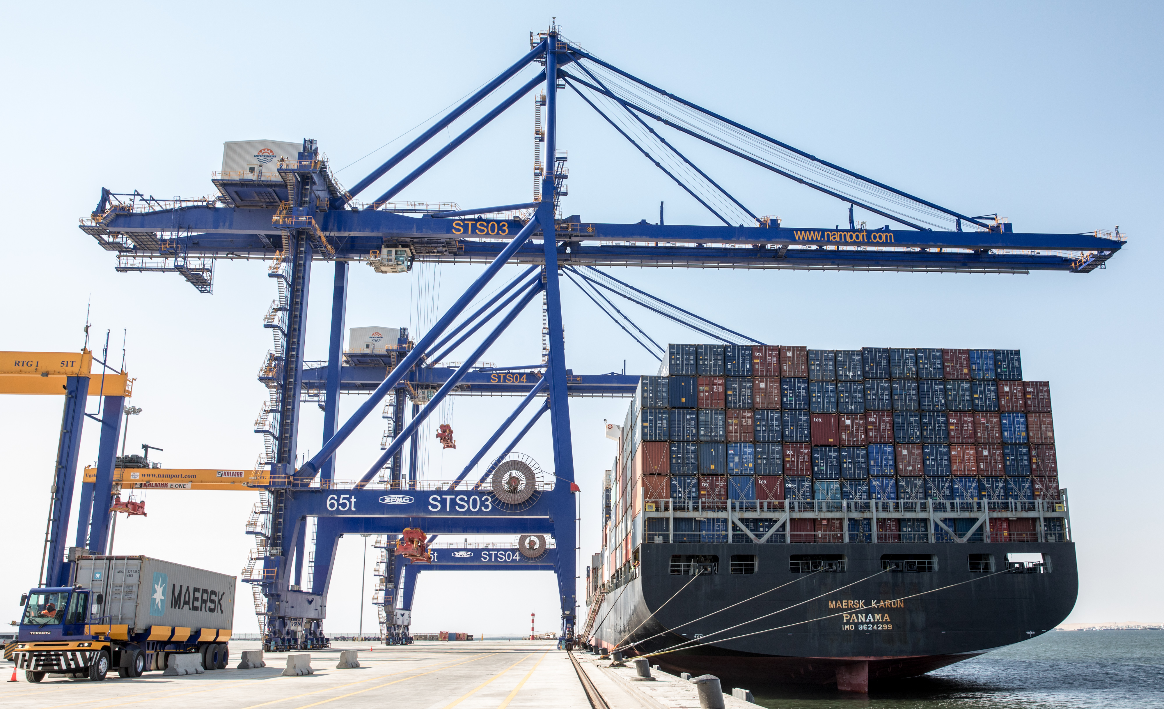 Containers are seen on a vessel at the new container terminal in Walvis Bay, Namibia, Aug. 2, 2019.(Xinhua/Zhang Yu)