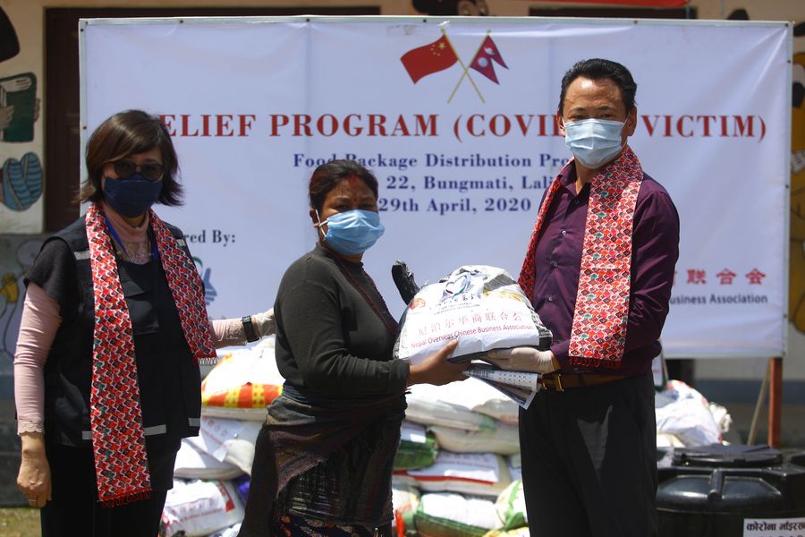KATHMANDU, April 30 (Xinhua) -- With the support of China Foundation for Poverty Alleviation (CFPA), Nepal Overseas Chinese Business Association provided food relief packages to around 250 poor families who were affected by a nationwide lockdown imposed in Nepal since March 24 to battle the spread of COVID-19.