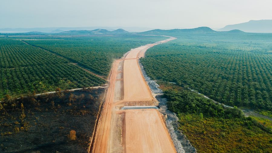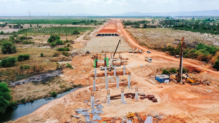 The Phnom Penh-Sihanoukville Expressway is under construction in Cambodia, March 3, 2020. (Photo courtesy of Cambodian PPSHV Expressway Co., Ltd)