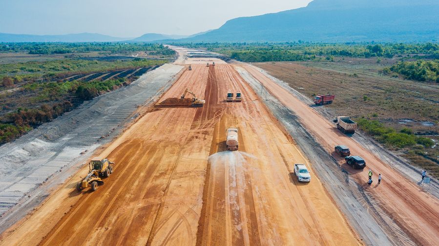 Despite all the obstacles brought by the COVID-19 pandemic, the construction of the first expressway in Cambodia continues to make headway day by day under a joint effort made by Chinese and Cambodian workers.