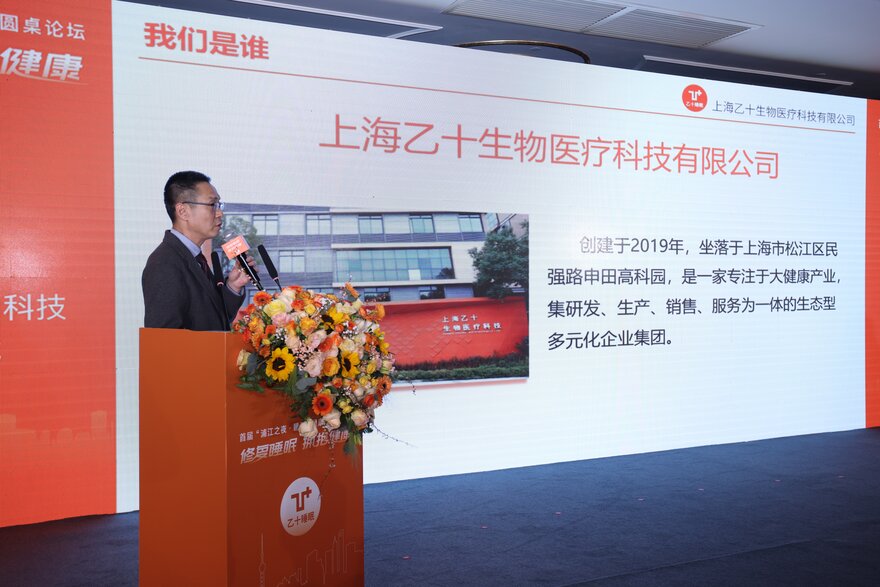 上海乙十生物医疗科技有限公司总裁陈自立在首届“浦江之夜·睡眠和健康”圆桌论坛上发表演讲