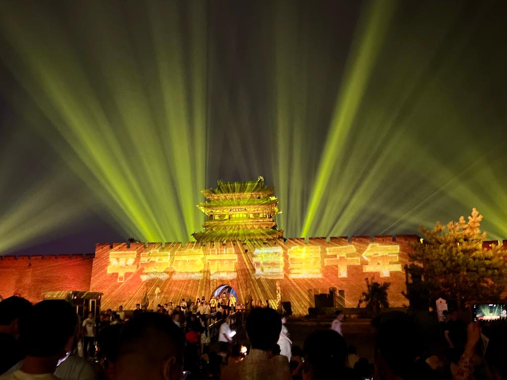 科技,让古城绽放新活力。每当夜幕降临,五颜六色的3D光束聚洒在古城墙上。从星云际会、风起云涌中堆土成城,到成城后气派森然、商贾云集,再到今日平遥之辉煌全貌……灯光秀以变幻光影展现平遥古城的历史变迁,带给人们神奇“穿越”感。