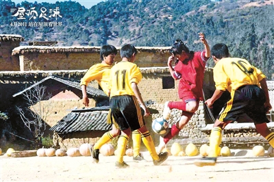 而对于“屋顶足球”的设定,飛鱼说:“其实并没有真实的故事来参照,我在前期勘景时,辗转各地,来到了云南宝山石头城的江边的一个村寨,当时,有几个小孩儿往江里踢青的核桃果,我就跟他们比赛,看谁踢得远。后来,我就想起我小时候放学之后,看到路边有石子和易拉罐,忍不住就上去踢两脚的这种心情,我想把这个元素可以加入电影中。所以,电影中,会有孩子们踢石榴、踢柚子的生动情景。然后,我又沿路走上了屋顶,看到这里群山环绕,江水声、小孩子嬉闹的声音和牛羊的声音混在一起,我就有了一个设想——如果能够在屋顶上踢足球一定很有意思,可以借着足球运动把独特的地理环境、山水人文氛围表现出来。可以说,这几件事请,就让这部电影初具雏形。”
