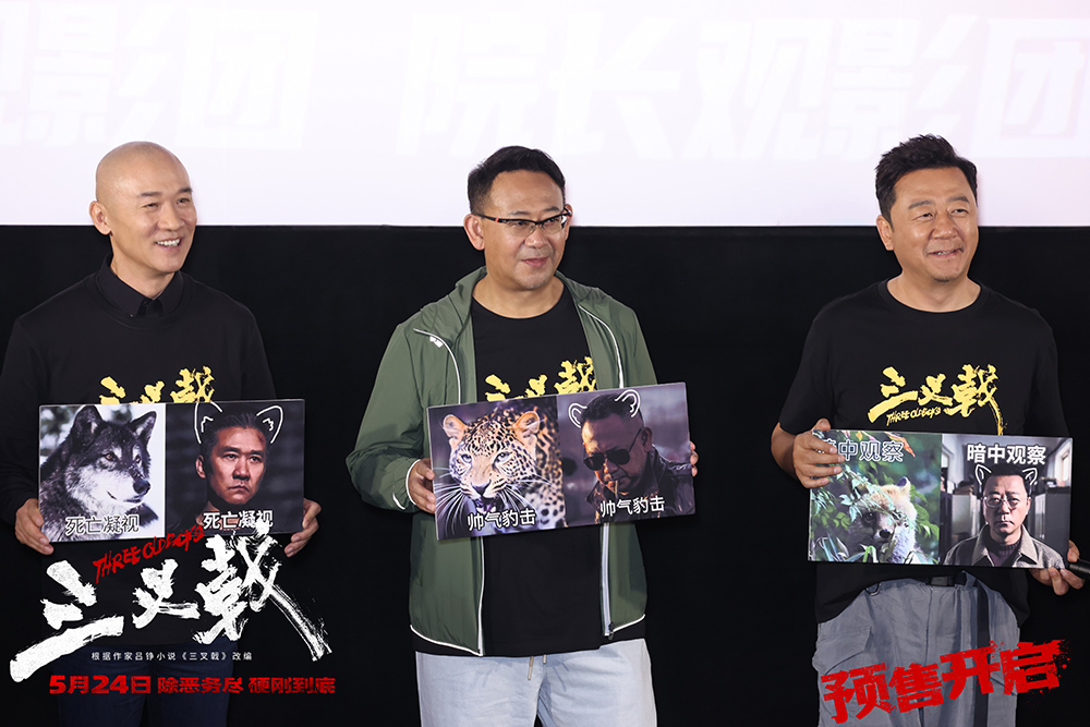 首映礼现场,电视剧版《三叉戟》陈建斌、董勇、郝平三位主演发来了一份特别问候,细心叮嘱影版“三叉戟”注意办案细节。随后,影版“三叉戟”黄志忠、姜武、郭涛也向剧版的老三位致敬回礼,同时也是向奋战在一线的公安干警以及警察家属致以最崇高的敬意。