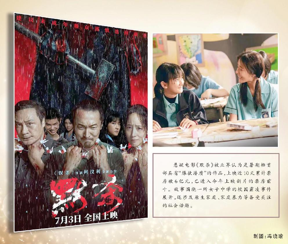 相较日前的持续高温,暑期档电影市场却有些不温不火。悬疑电影《默杀》被业界认为是暑期档首部具有“爆款潜质”的作品,上映近10天累计票房破6亿元,已进入今年上映新片的票房前十。该片导演柯汶利曾因执导热门片《误杀》被观众熟悉,时隔五年《默杀》卷土重来,故事围绕一所女子中学的校园霸凌事件展开,还涉及原生家庭、家庭暴力等备受关注的社会话题。