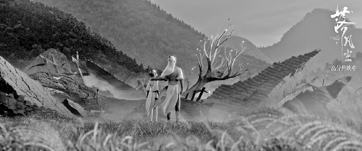 影片中在视觉美学上尝试了崭新的国风设计,“我们想打造一个不同以往的神界气质,全是白色的布、黑色的屋顶,一种特别素雅、特别极致的呈现。为了达到这个效果,我们就得不断地尝试,迭代出最好的效果。”