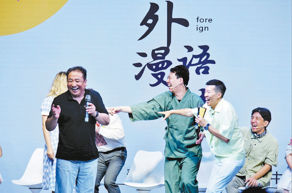 然而,既要保留相声的传统特色,又要融入外国演员的独特风格,内容创作难度自然增大。好在,“相声遇上歪果仁”团队有自己的办法。他们会结合网络热点进行二创,以实现“破圈”传播。例如,发现综艺《再见爱人》的热度不断攀升后,闫佳宝就在专场中设计了“各国恋人分手方式”的互动环节。乌克兰籍中国女婿耶果在台上分享家乡分手习俗时,他的中国妻子意外登场,当“妻管严”遭遇“分手文化”——一个眼神就令丈夫秒怂的反差喜剧效果,将现场气氛推向了高潮。
