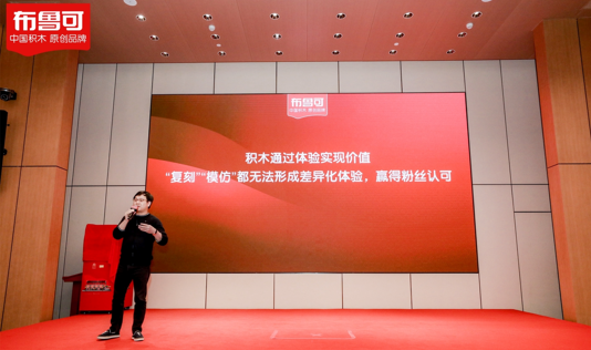布鲁可集团创始人朱伟松在现场围绕“红色点燃文化自信,原创成就中国积木”的话题,分享了布鲁可品牌升级的初衷与愿景,他表示:“布鲁可用时6年,成为中国儿童积木第一,未来,我们要用原创打造中国积木第一品牌!”目前,中国积木市场尚处于制造到智造的转型关键点,品牌集中度较低,缺乏创新能力和品牌影响力,消费者心智被国际品牌占领。布鲁可作为中国积木原创品牌的领跑者,2020年,销量增长232%,连续三年销量增速第一。2021年在天猫、玩具反斗城、山姆沃尔玛等多个主流渠道,单品销量第一,超越国际积木品牌。