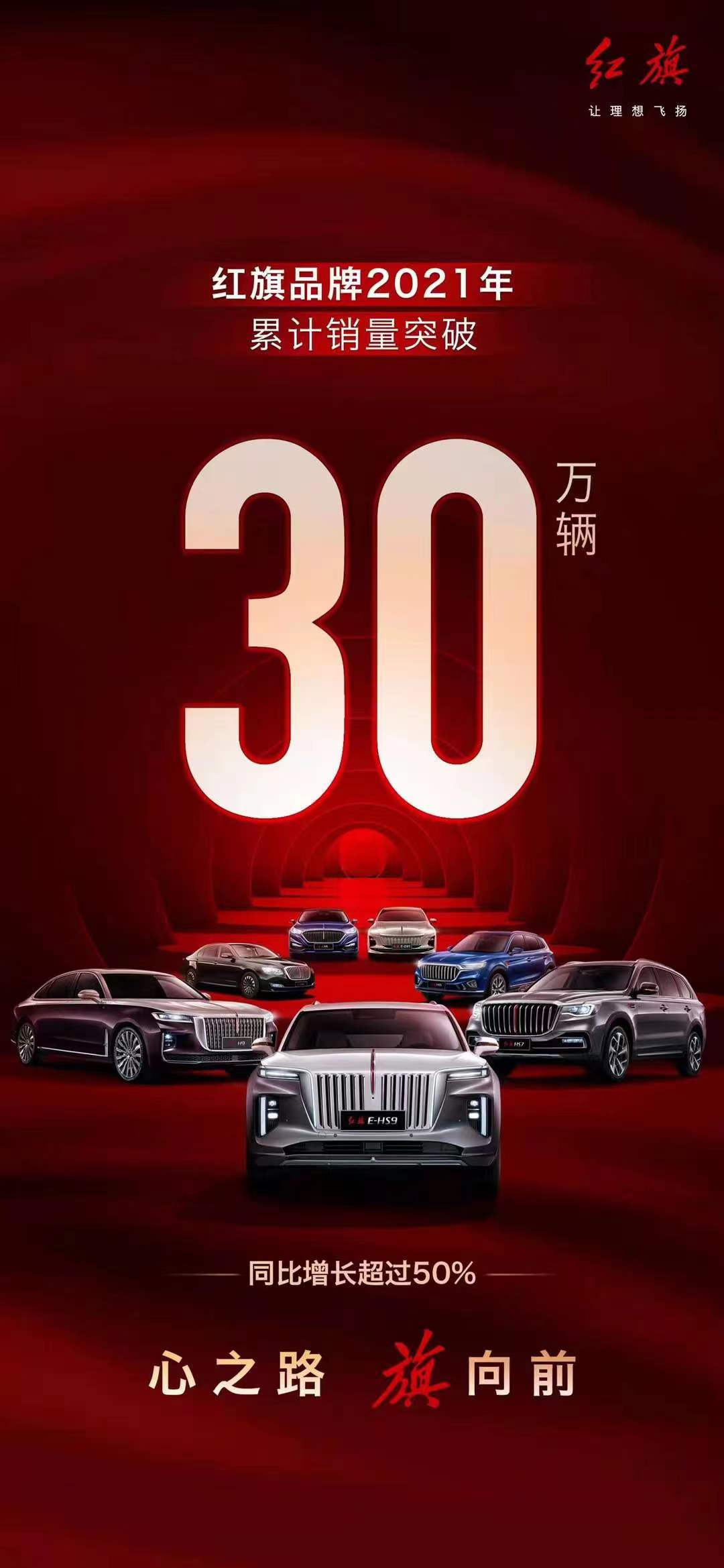 自2017年中国一汽总部直接管理运营后,一汽红旗迎风招展,在汽车芯片短缺与全球疫情双夹击下,以丰富的产品阵容、合理的产品结构与坚实的产品力坐稳市场,逆势向上,“让理想继续飞扬”。