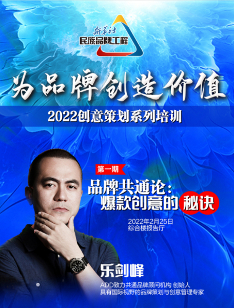 ADD致力共通品牌顾问机构创始人乐剑峰,是新华社民族品牌工程2022年创意策划系列培训的首期嘉宾。他认为,充满碎片化资讯的时代,超级发达的媒介,多元的创意形式,让消费者眼花缭乱,也让今天的企业与营销者感到前所未有的迷茫。如何透过纷乱的表象,发掘恒久不变的创意原力,打造超级品牌?乐剑峰用品牌共通论,分享打造爆款创意的秘诀。品牌共通论是乐剑峰的核心理论,结合多年营销经验及理论研究,以“共通之道”为核心,提出的品牌塑造的战略级思考法则。围绕“原力、爆品、符号、共创”4大维度,积极融合人文、艺术、科技等相关元素,达到品牌能量与价值曲线的重造。