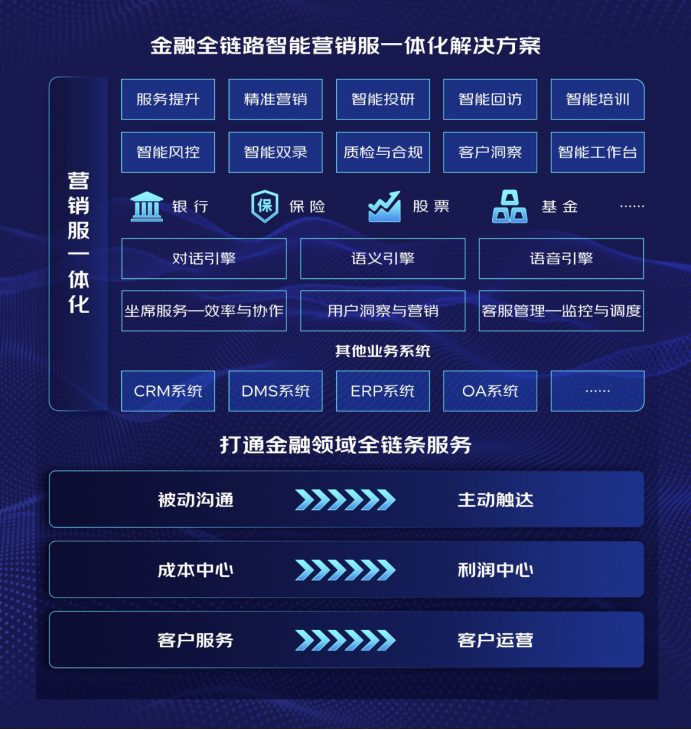 在金融领域,言犀推出了金融全链路智能营销服一体化解决方案,旨在通过数智化技术打通金融运营、服务、销售所有环节,实现降本增效,助力服务部门实现由成本中心向价值中心的转型升级,提升金融机构的数字化、智能化、精细化的管理水平。