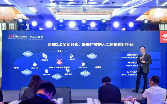 7月13日,以“向实共生 重启增长”为主题的2022京东全球科技探索者大会之京东云峰会——智能服务专题论坛在北京嘉里酒店隆重举行,中国科协企业创新服务中心副主任邓帆,北京市通州区委组织部副部长张洪政,清华大学社会科学学院副院长、数据治理研究中心执行主任孟天广,京东消费及产业发展研究院院长刘晖,荣耀电商服务经理关勇华,上海伯俊科技北京分公司副总经理樊红艳等重要嘉宾受邀出席了大会,并分享了产业数智化发展实践及经验。京东集团副总裁、IEEE FELLOW、智能客户服务事业部总裁何晓冬发布了全新升级的言犀2.0平台以及面向政务、金融、元宇宙等一系列解决方案。