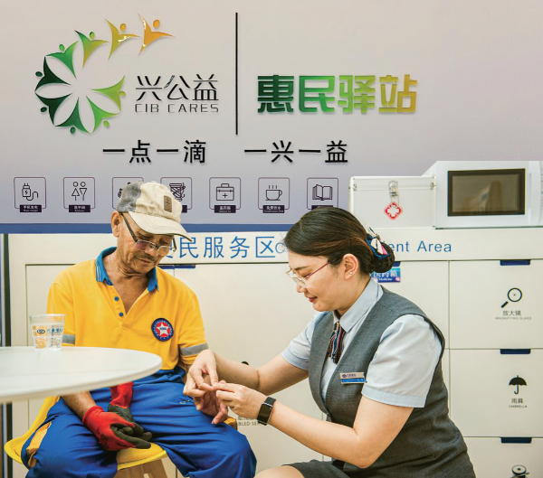 兴业银行在全行2000多家营业网点推出“兴公益”惠民驿站服务品牌,为特定的社会公众开放、免费提供本行网点各类便民设施及惠民服务,定期开展“暖心服务”“红色阵地”“适老助残”“邻里伙伴”等主题服务。全行范围内组织开展“夏日关怀”“敬老尊老”“暖心过腊八”等专题活动,分行自行组织开展形式多样的关怀、送温暖活动。