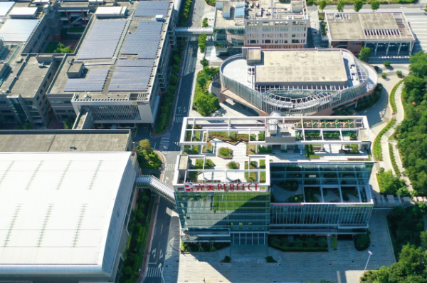 完美(中国)有限公司践行“双碳”战略,坚持绿色发展。完美华南基地在建设规划时就秉承“生态建筑”理念,从选址布局、节地、节水、节能、节材和环境方面按行业标准中最高级别来规划与建设,其采用的数字化车间、先进的水处理系统、屋顶光伏发电等“减碳”方式,实现了节能减排和保护环境,让完美工厂成为“绿色工厂”新范式。2021年,完美华南基地荣获“2020-2021年度第二批国家优质工程奖”。图为完美华南基地。