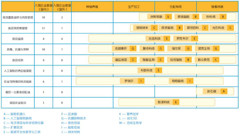 基于五年来通过创新平台积累的创新实践经验,白皮书总结了近年来食品企业重点关注的9大创新场景。在场景选择方面,立足食品行业供应链,以场景创新和业务赋能为导向;在场景分析方面,紧扣业务痛点,对潜在可行的技术路径充分对比;在场景落地方面,筛选和梳理了22家典型企业进行重点介绍。面对食品价值链从农场到餐桌四大核心环节中产生的食品安全合规与风险管理上的挑战,这些创新企业从通信、传感、新材料、人工智能等技术路径切入并进行创新,提供了行之有效的解决方案。