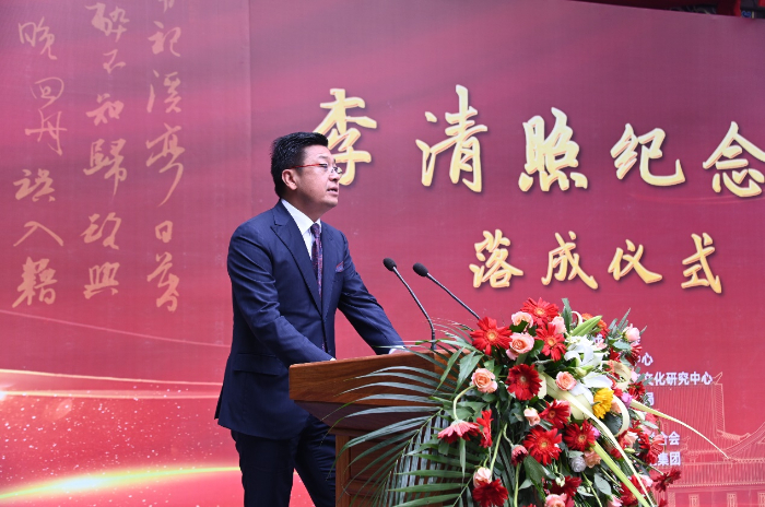在落成仪式上,金台文院院长蔡传庆受邀致辞。他在发言中动情地说:“今天我们聚在当年的南阳河畔,就是李清照的归来堂、易安居,在这里李清照成为名满天下的易安居士,大量的诗词和故事皆发生在这里。”他在致辞中对青州市委、市政府以及纪念祠修缮重光作出贡献各界人士表示感谢,“正是依靠他们的努力与担当,让我们能够透过厚重的历史,感受文化的传承与光辉,从而坚定文化自信,去更好的讲述新时代的中国故事!”
