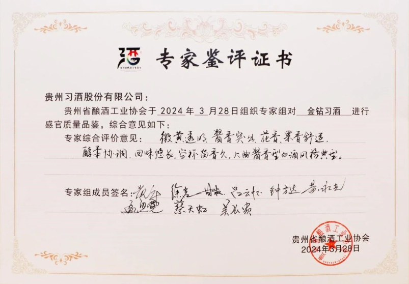 君品习酒、习酒·窖藏1988、金钻习酒专家组鉴评意见