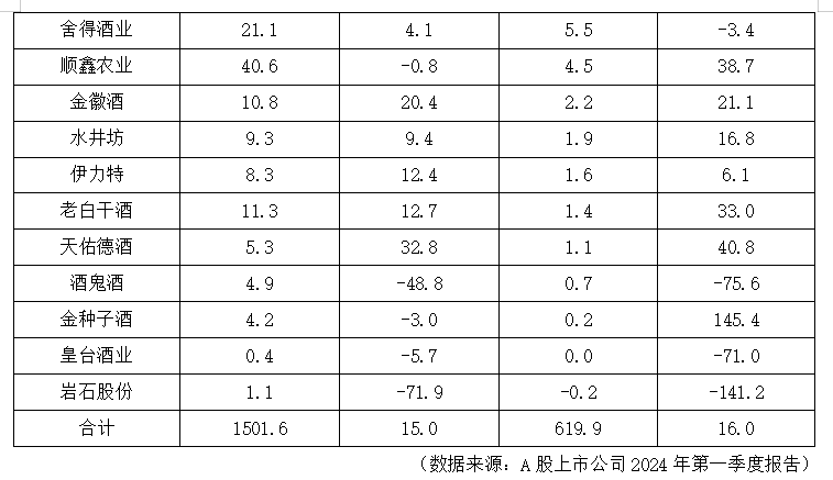从A股20家白酒上市企业业绩来看,一季度合计实现营业收入1501.6亿元,同比增长15%;实现净利润619.9亿元,同比增长16%。从一季报中反映出,上市白酒企业业绩正加速分化,大部分名酒企业营收和利润均保持了两位数增长,营收同比增长的15家,下滑的从上年的2家增至5家,显示出次高端和大众酒市场竞争比较激烈。