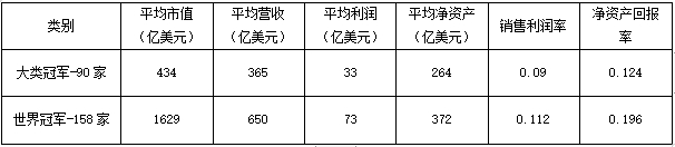 中国产业冠军企业与世界产业冠军企业的比较