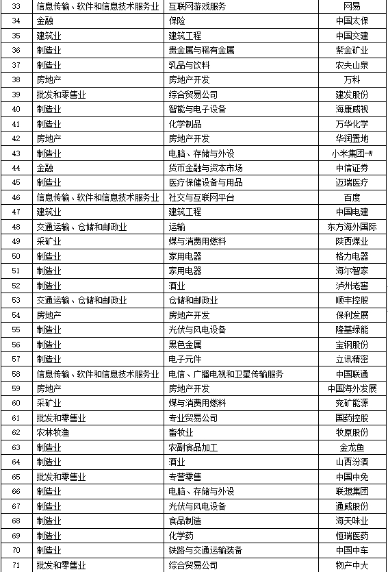利润排名前十名:工商银行、建设银行、农业银行、中国银行、腾讯控股、中国石油、中国海油、中国移动、中远海控、中国平安;