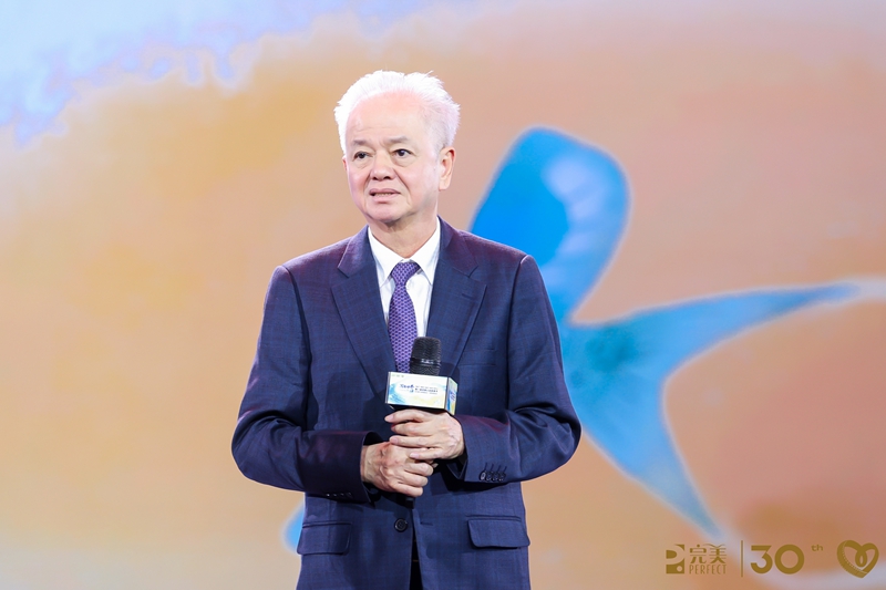 完美公司董事长古润金的发言充满了深情和力量。他回忆起30年前,完美公司因为中山市侨办的引领,才有机会在中国这片充满机遇的土地上开启了创业征程,在中国各级政府的支持与帮助下,才能走到今天,并且走向下一个30年。