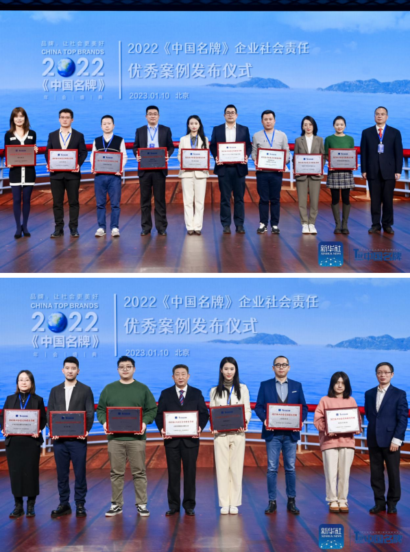 2022年底,为多维度考察中国品牌在企业社会责任方面的综合表现,《中国名牌》全媒体联合相关智库机构启动了“2022《中国名牌》企业社会责任优秀案例”征集活动,通过案例征集、案例初评、专家评审、案例公示,最终甄选出阿里巴巴集团、小米集团、腾讯公司、中国联通、京东科技、携程集团、中化环境、哔哩哔哩、保利置业、万家乐、倍轻松、值得买科技、东强股份、得物App、海阳集团、来酷科技、万创投行、燕大滨沅、挪瓦咖啡、金叶绿森、财金星空、南源新材料等获评企业社会责任优秀案例。本次年会现场揭晓了“2022《中国名牌》企业社会责任优秀案例”名单,并为入选企业颁发了证书和奖牌。
