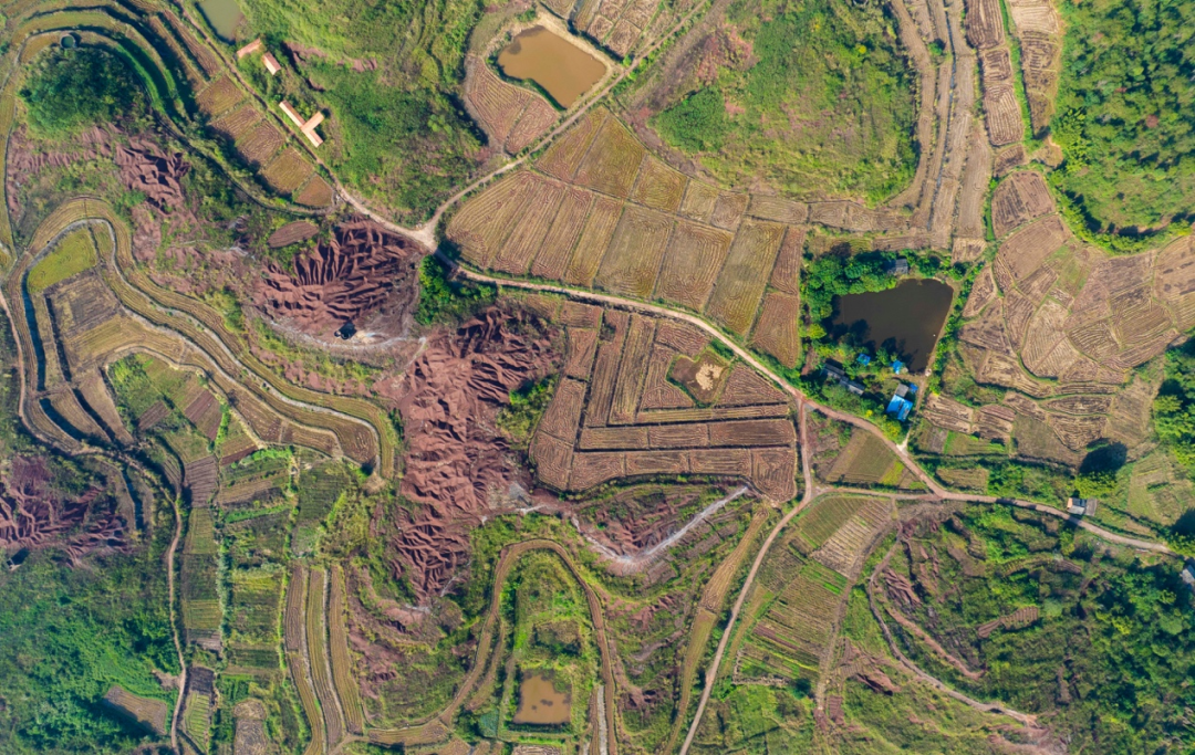 然而,早期整治方式较为单一,红砂岭的生态系统并不稳定。随着后续人为活动增加,大量田地丢荒,土地退化引发的红层荒漠化变成了最突出的生态问题。这造成了当地红砂岭局部区域水土流失严重,土壤有机质含量几乎为零,生物多样性衰退,土地利用效益极低。南雄红砂岭迫切需要新一轮整治。