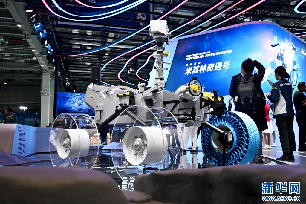 这是11月6日在第七届进博会汽车展区拍摄的在亚洲首次亮相的米其林月球探测车轮胎。
