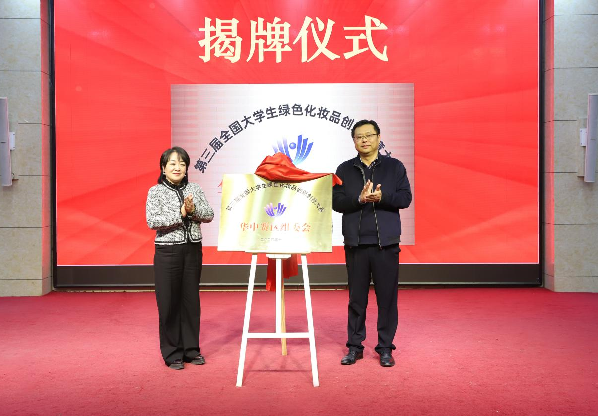 图为第三届全国大学生绿色化妆品创新创意大赛华中赛区组委会揭牌仪式现场。 主办方供图