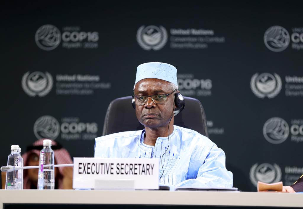 12月2日,在沙特阿拉伯首都利雅得举行的《联合国防治荒漠化公约》(以下简称《公约》)第十六次缔约方大会开幕式上,《公约》秘书处执行秘书易卜拉欣·蒂奥致辞。