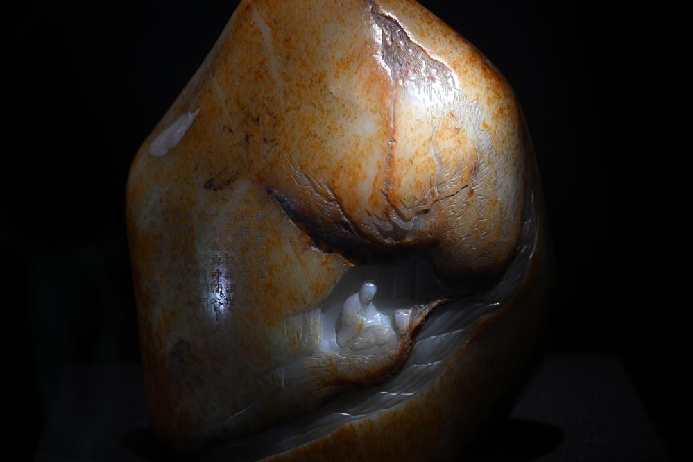 1月6日拍摄的乾隆御题白玉炼药仙人图山子。