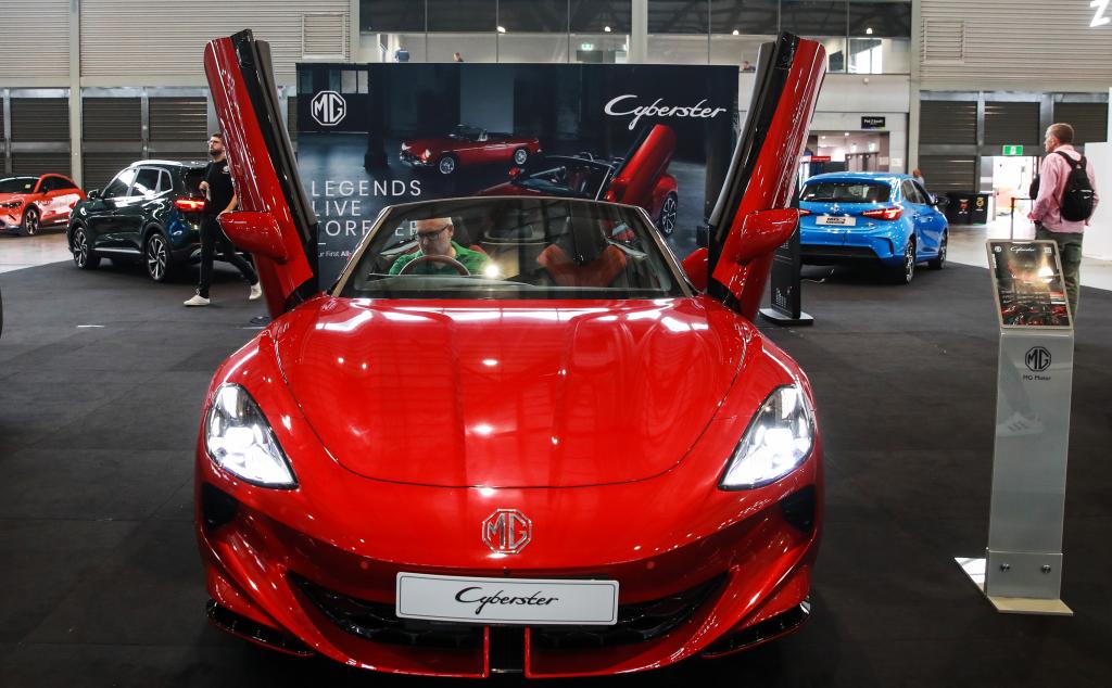 3月7日,一名参观者在澳大利亚悉尼举行的家庭能源与电动车展上体验上汽名爵的MG Cyberster电动跑车。