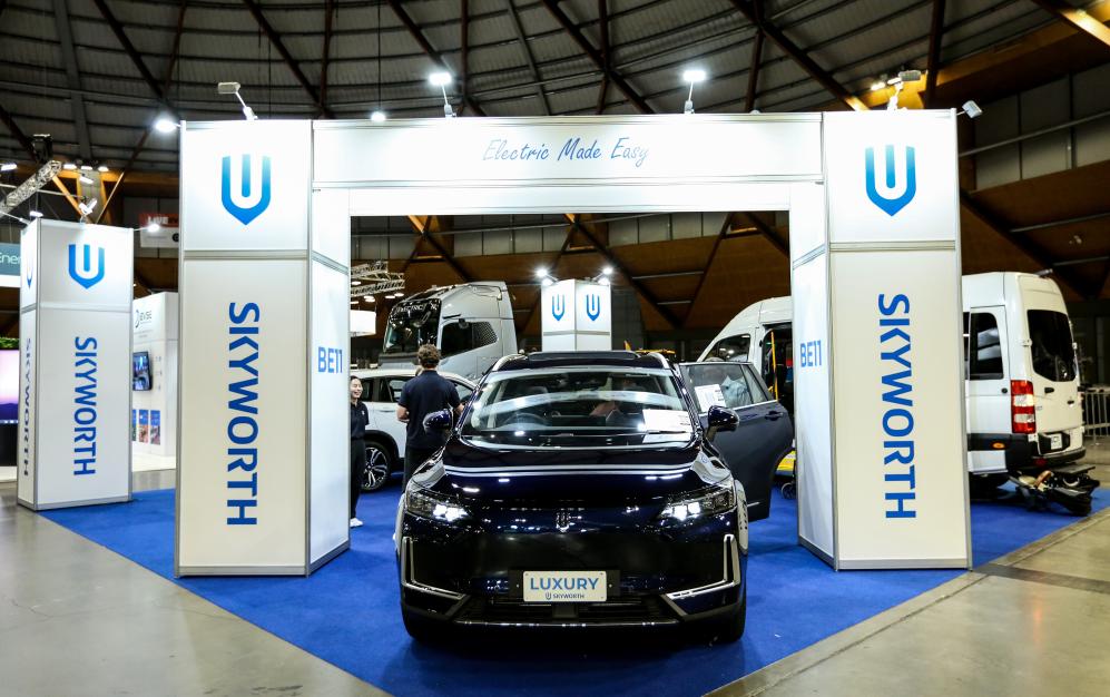 这是3月7日在澳大利亚悉尼举行的家庭能源与电动车展上拍摄的创维汽车展台。