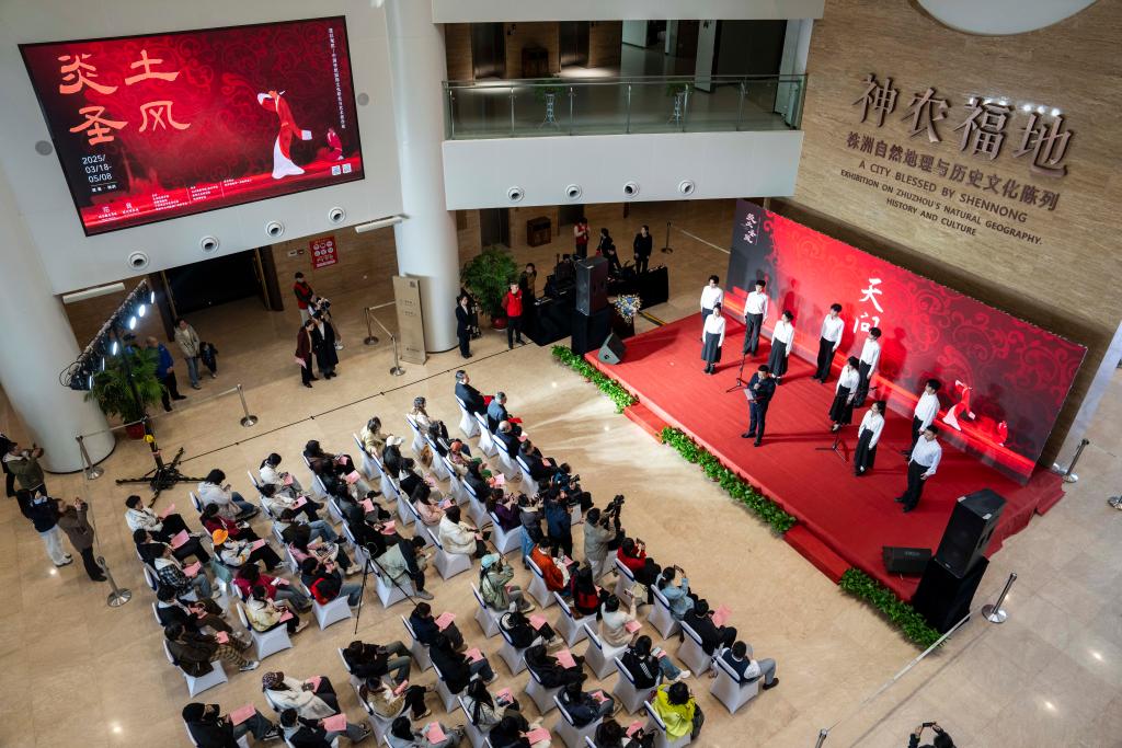 当日,由北京服装学院、湖南博物院、中共株洲市委宣传部、株洲市文化旅游广电体育局联合主办的“炎土圣风:楚汉观照——中国传统服饰文化研究与艺术创作展”在湖南株洲博物馆开幕。本次展览作品以古代楚汉文物为创作灵感来源,共展出了38名艺术家的360余件作品,涵盖数字影像、染织服饰、绘画、篆刻、雕塑、漆器等多种类型。本次展览将持续到5月8日。