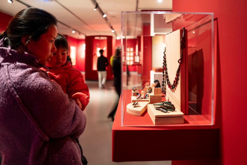 3月18日,观众在株洲博物馆观看展出的首饰设计作品。