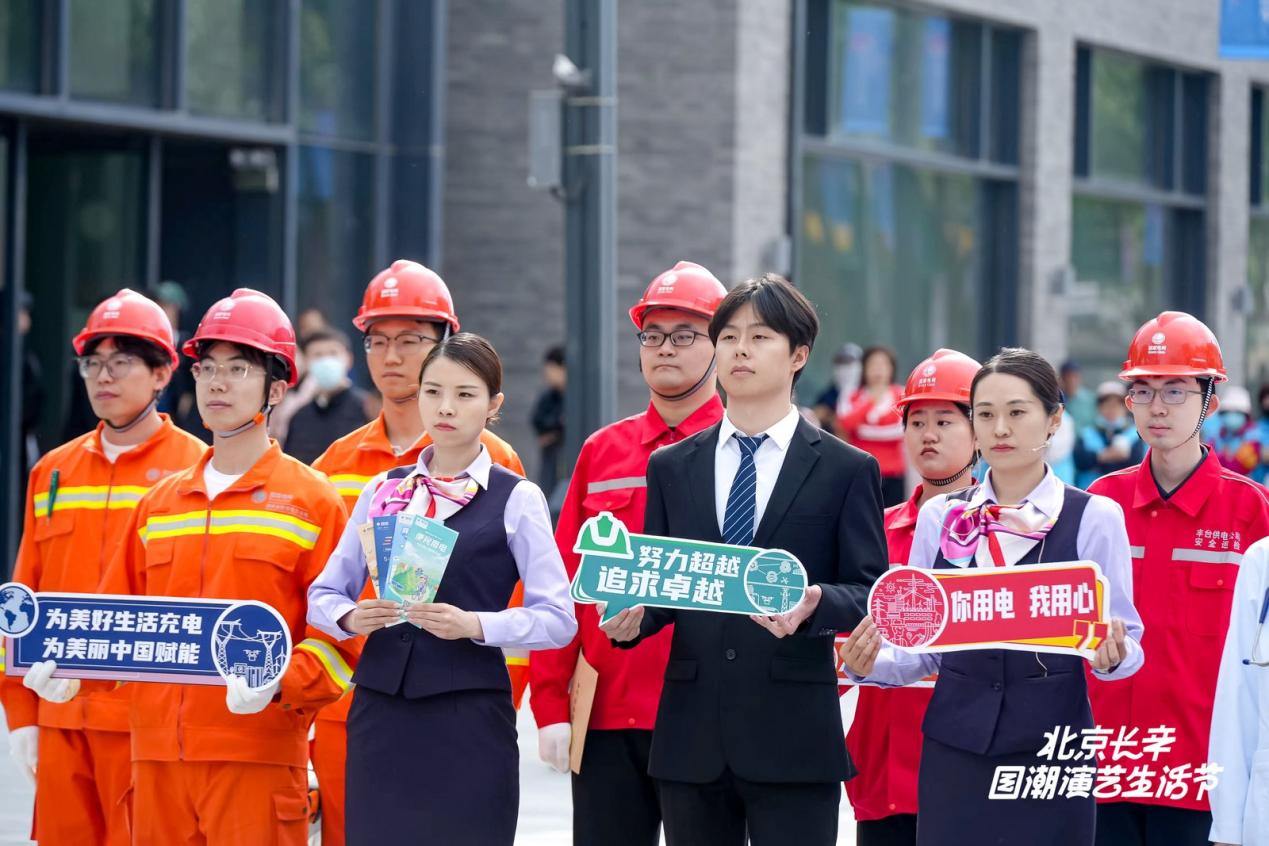 在长辛店国潮时尚街区的依文国潮时尚艺术中心门前,“长辛先锋 劳动赞歌”工装主题大秀率先登场,来自城建、电力、医护等行业的劳动者们身着工装,展现新时代劳动者风采。活动现场邀请丰台区劳模及一线工作者代表观看演出,他们胸前的奖章在灯光下熠熠生辉,成为观众席中亮丽的风景线。