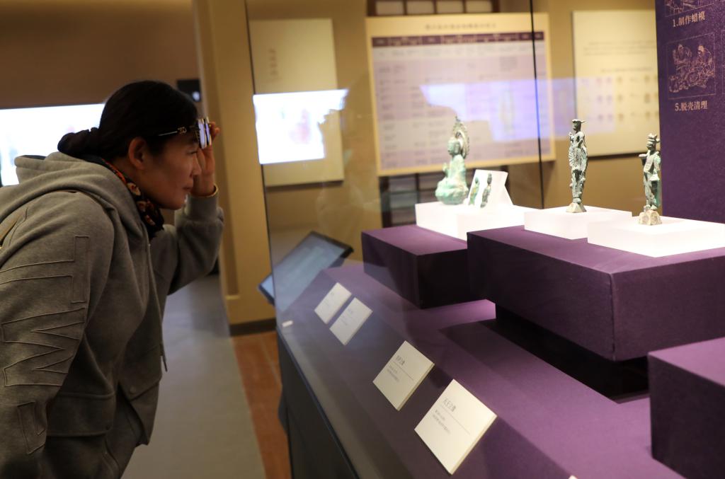 5月3日,游客在河北省邯郸市博物馆参观。