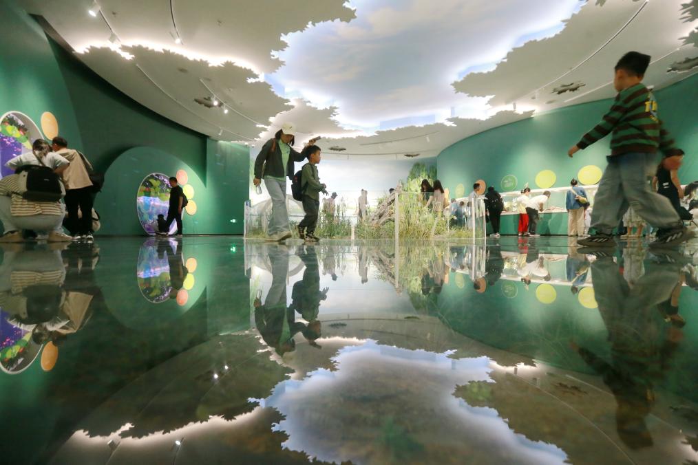 5月3日,游客在江苏扬州中国大运河博物馆参观。