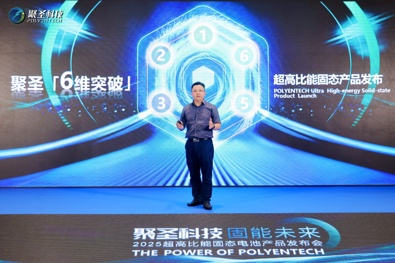 5月15日,在CIBF2025展会期间,聚圣科技发布超高比能原位固态一体化软包电池——聚圣•固能1号,在电芯层级实现高安全、高比能、高倍率、长寿命、宽温域和低成本这六个维度的突破。