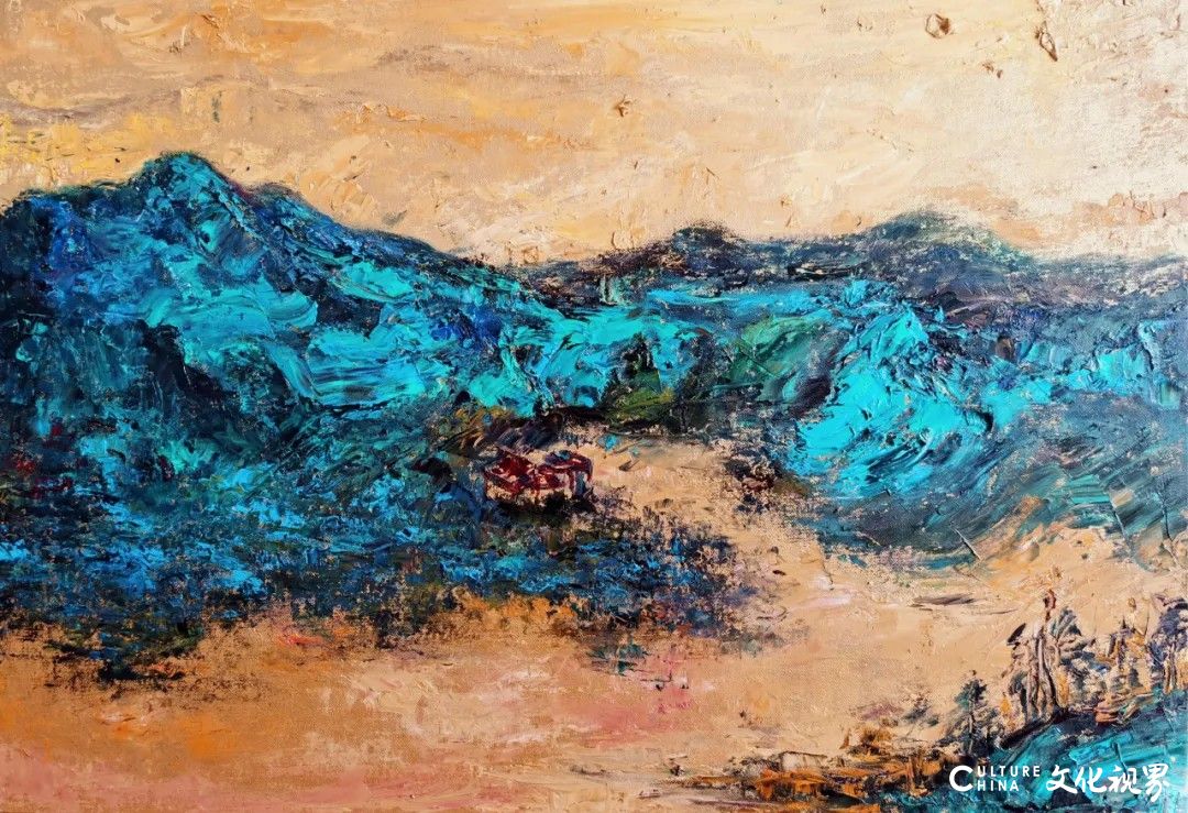 她的作品并非对传统的复制,而是一种延续与重生。油彩的厚度与矿物色的清润在画面中相遇,构成理性与诗性的双重张力。那一抹青绿,不仅映照山河之姿,也映照心灵的光影,使观者在观看中沉入“画意深处”,感受时间、自然与心象的交融。