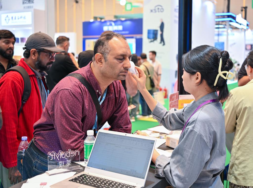 11月4日,采购商在第138届广交会的智慧医疗专区了解产品。