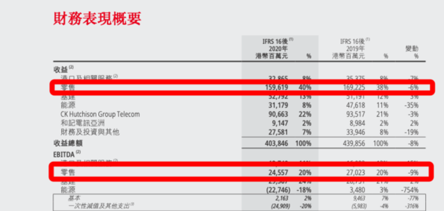 屈臣氏财报显示,2020年底,屈臣氏零售部门在全球27个市场经营16167家店舖。