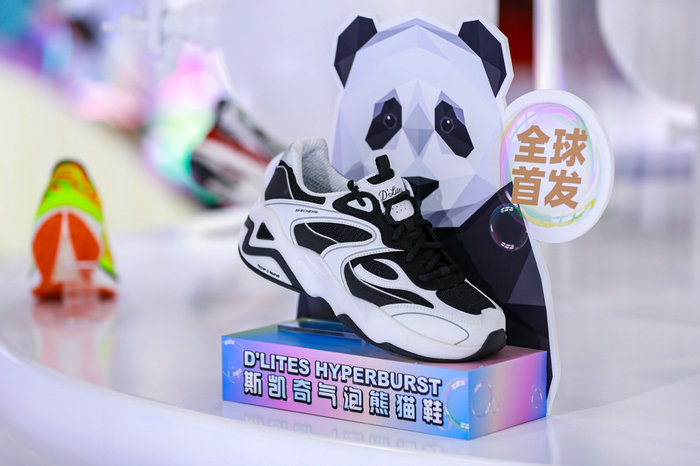 作为运动休闲品牌,斯凯奇在体育产业鞋服领域创新之路上步履不停,持续研发新科技、推出新产品。本次进博会,斯凯奇展台有多款产品首发亮相,其中最亮眼的全球首发的斯凯奇D’Lites气泡熊猫鞋,产品使用了Hyper Burst科技,轻质、回弹力相较传统材质提升15%,轻质EVA与橡胶材质加固鞋款专业性能。
